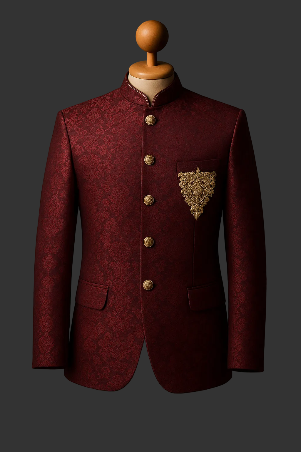 Deep Maroon Jamawar Prince Coat for Men | Embroidered Wedding & Formal Wear
